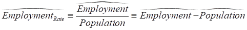 Introducing the GDP to Employment ratio again and using the percentage rule again gives us: