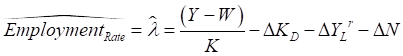 Feeding this back into the equation for the rate of change of the employment rate, we have: