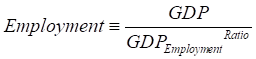 Since employment depends on GDP, we can define a GDP to Employment ratio: