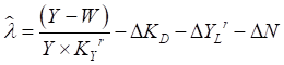 The rate of change of the GDP to Employment ratio is a measure of technical progress over time. As a first approximation, I assume that this is a constant. For a symbolic rendition of the GDP to Employment ratio, I use Y for GDP, subscripted L for Employment, and a superscripted lowercase r to show that this is a ratio: