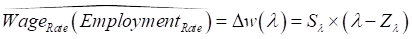 If you’ve gotten this far, I’m going to assume that you can cope with some symbols rather than full words (but I’ll revert to words for the derivation of the employment rate equation). I try to make symbols in my equations interpretable, so I use a range of symbols and formatting that is easy to interpret. I use the Greek capital D, D, to represent change. Lowercase w stands for the wage, the Greek lowercase l, l, stands for the employment rate. I use S for the slope of a line, Z for the zero intercept for a line, and subscripts to show which line I’m talking about. Since this is an equation for the rate of change of wages as a function of the employment rate, I use Sl and Zl: